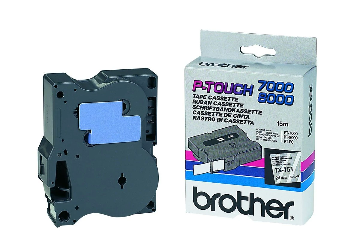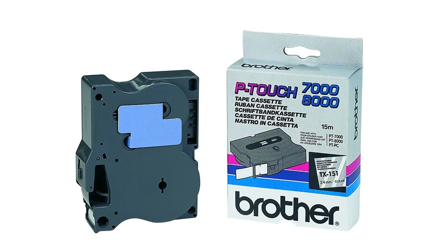 Brother TX-151 átlátszó alapon fekete eredeti feliratozó szalag