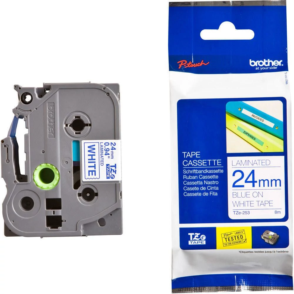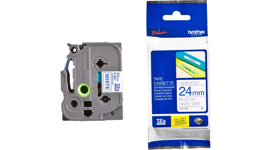 Brother TZe-253 fehér alapon világoskék eredeti feliratozó szalag (24mm x 8m)