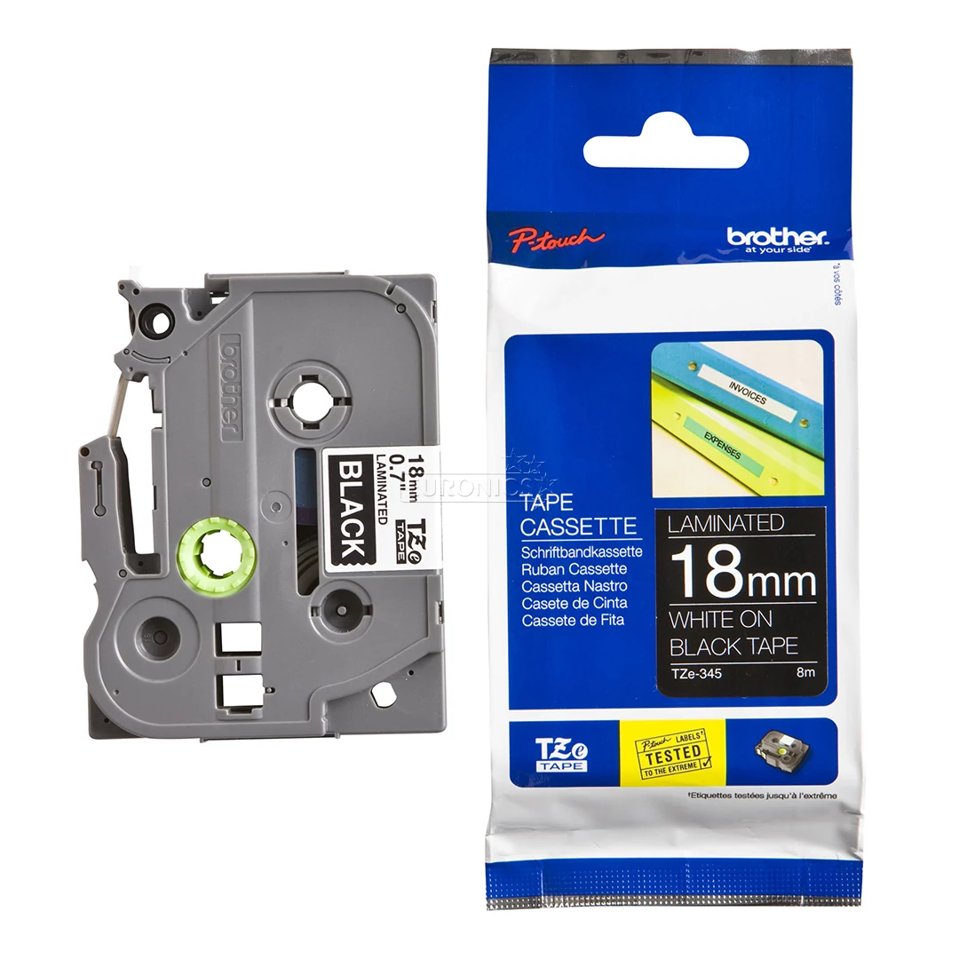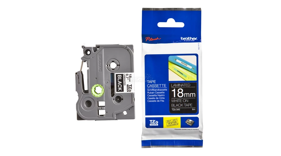 Brother TZE-345 fekete alapon fehér eredeti feliratozó szalag (18mm x 8m)