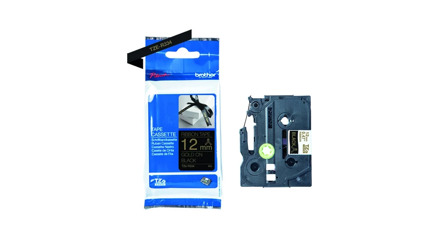 Brother TZE-R334 fekete alapon arany eredeti selyemszövet feliratozó szalag (12mm x 4m)