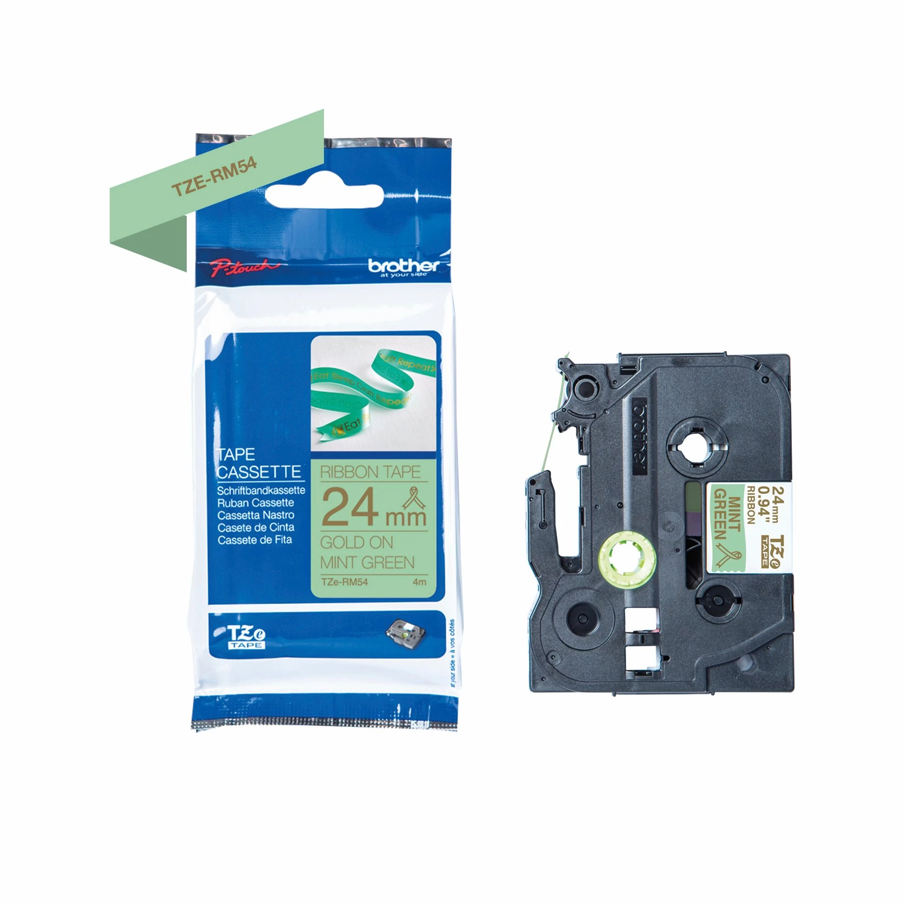 Brother TZE-RM54 mentazöld alapont arany eredeti feliratozó szalag (24mm x 4m)