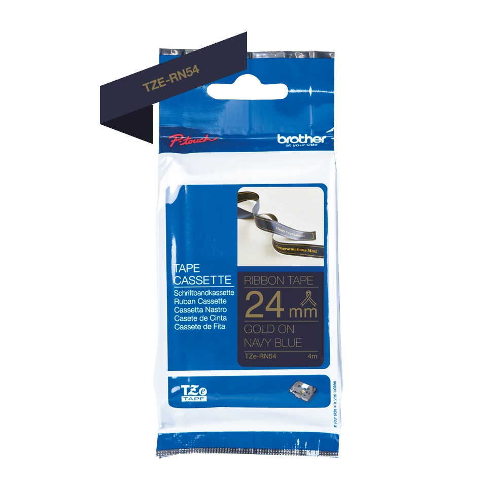 Brother TZE-RN54 sötétkék alapon arany eredeti selyemszövet feliratozó szalag (24mm x 4m)