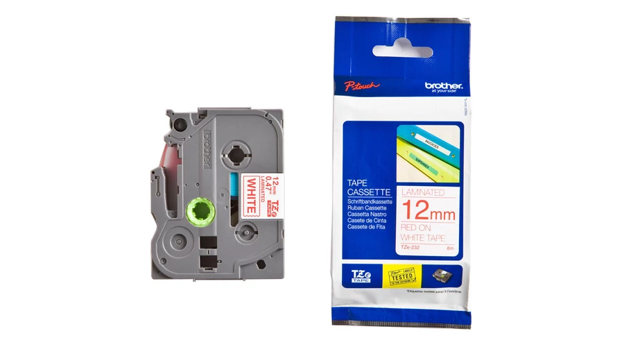 Brother TZE-232 fehér alapon piros eredeti feliratozó szalag (12mm x8m)
