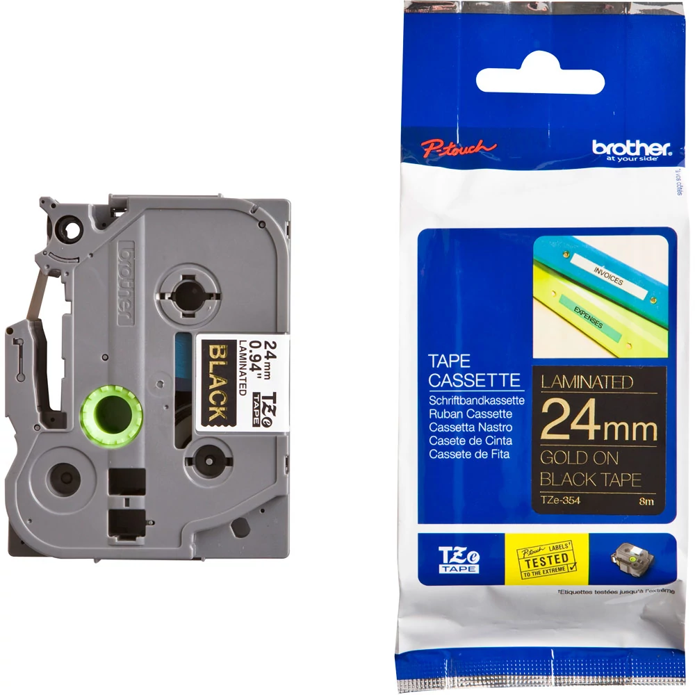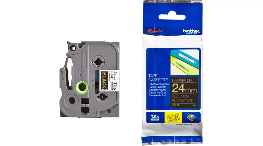 Brother TZE-354 fekete alapon arany eredeti feliratozó szalag (24mm x 8m)
