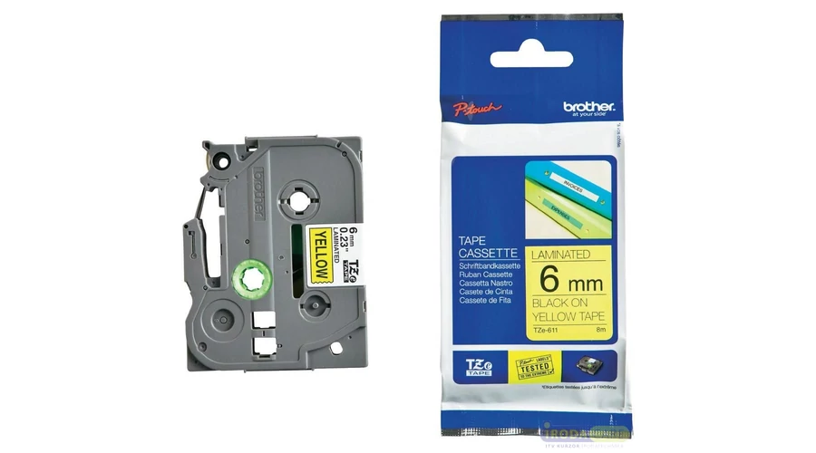 Brother TZE-611 sárga alapon fekete eredeti feliratozó szalag (6mm x 8m)