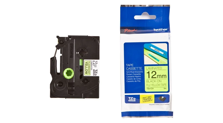 Brother TZE-C31 sárga alapon fekete eredeti feliratozó szalag (12mm x 5m)