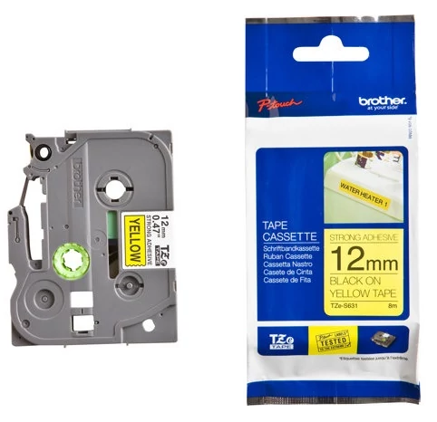 Brother TZE-S631 sárga alapon fekete eredeti feliratozó szalag (12mm x 8m)