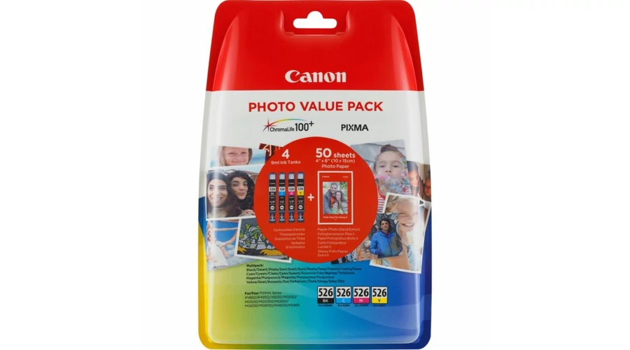 Canon CLI-526 színes eredeti tintapatron multipack + fotópapír (BK, C, M, Y)