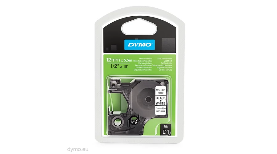 Dymo D1 16959 fehér alapon fekete eredeti feliratozó szalag (S0718060)