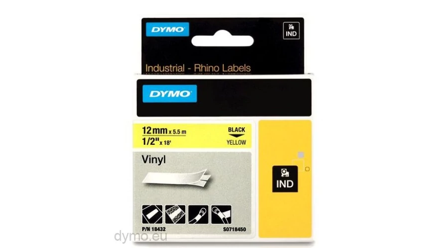 Dymo Rhino 18432 sárga alapon fekete eredeti feliratozó szalag (18432)