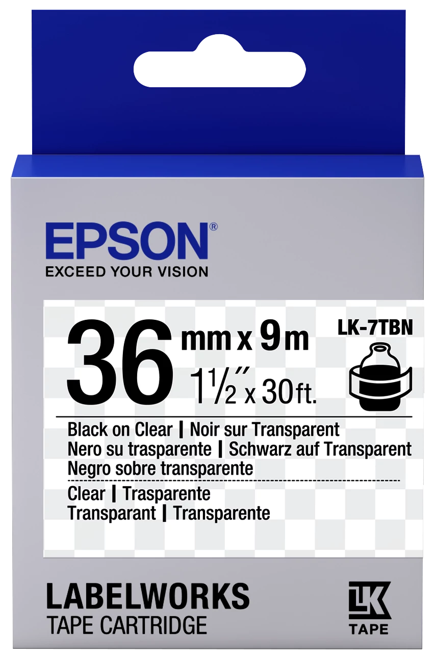 Epson LK-7TBN átlátszó alapon fekete eredeti címkeszalag