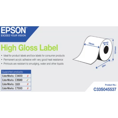 Garancia: 1 év76mmx33mKompatibilis nyomtatók:Epson TM-C3500Epson ColorWorks C3500Epson ColorWorks C4000e Epson ColorWorks C4000eBK