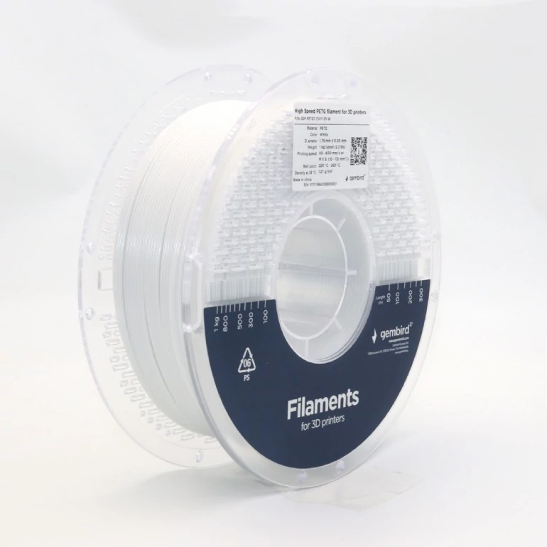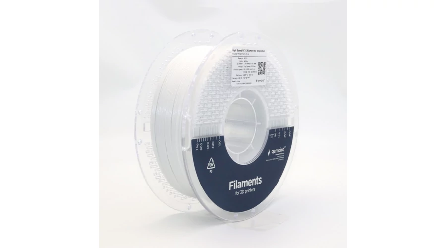 Gembird fehér eredeti nagysebességű PETG filament (1,75mm, 1kg, 3DP-PETG1.75HY-01-W)
