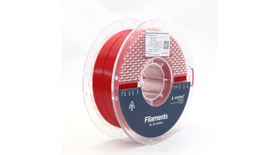 Gembird piros eredeti nagysebességű PETG filament (1,75mm, 1kg, 3DP-PETG1.75HY-01-R)
