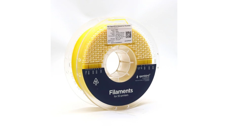 Gembird sárga eredeti nagysebességű PETG filament (1,75mm, 1kg, 3DP-PETG1.75HY-01-Y)